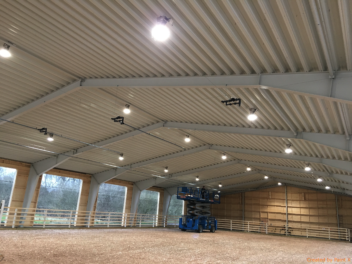 Detta innovativa system använder en skenlösning som monteras i nocken på ridhuset. En vagn rör sig fram och tillbaka över ridbanan och fördelar vattnet jämnt med noggrant placerade munstycken.