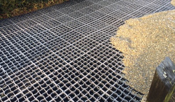 plastbaserade markarmerings mattor som läggs ut på ett väldränerat underlag (t.ex. grus, jord) och fylls med material som singel, sand eller grus för att skapa en stabil, dränerande yta som förhindrar lera och upptrampning, även under tung belastning.